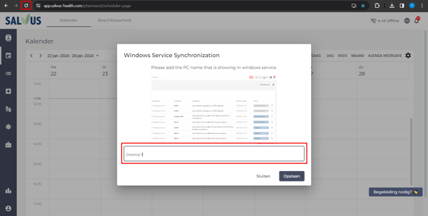 Ga naar het Salvus Platform. Daar verschijnt nu een pop-up met de melding 'Windows Service Synchronization'. Als deze pop-up niet automatisch verschijnt, refresh dan even de pagina.